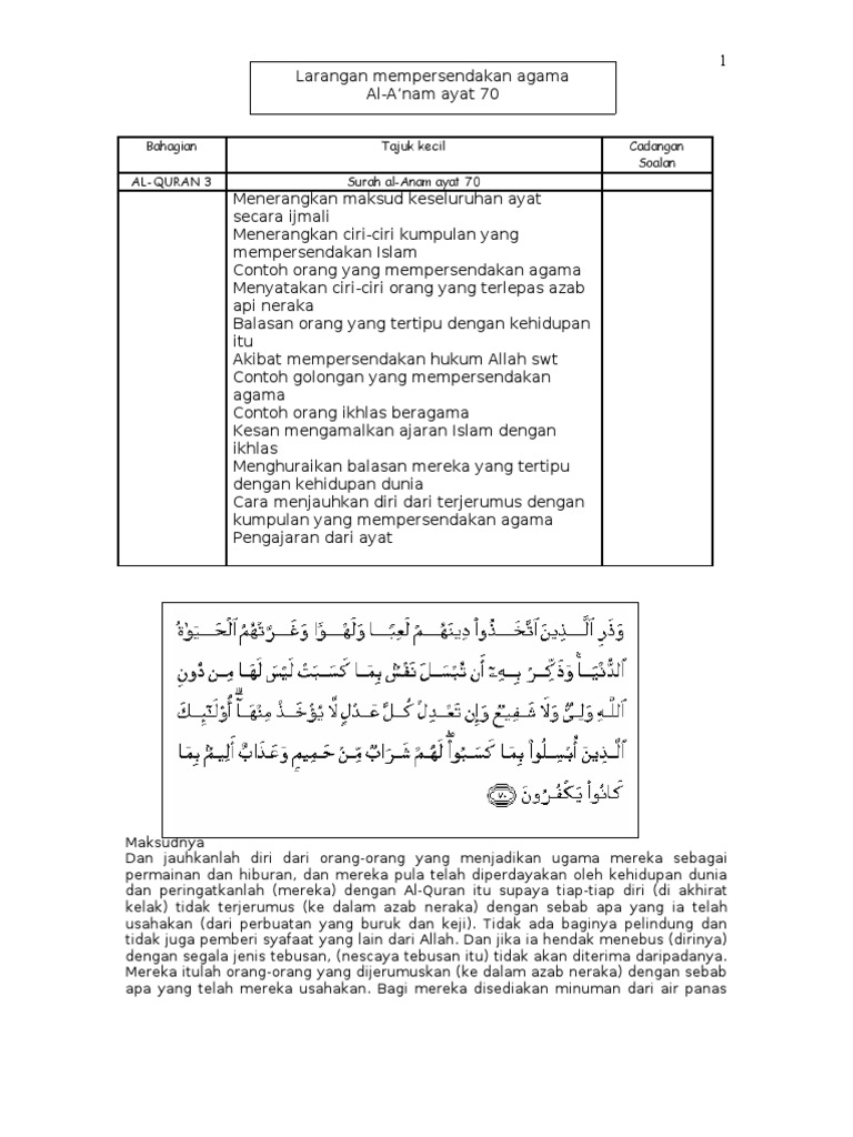 Ayat Kefahaman Tingkatan 4 Larangan Persenda Agama Surah Al An Am Ayat 70 Youtube