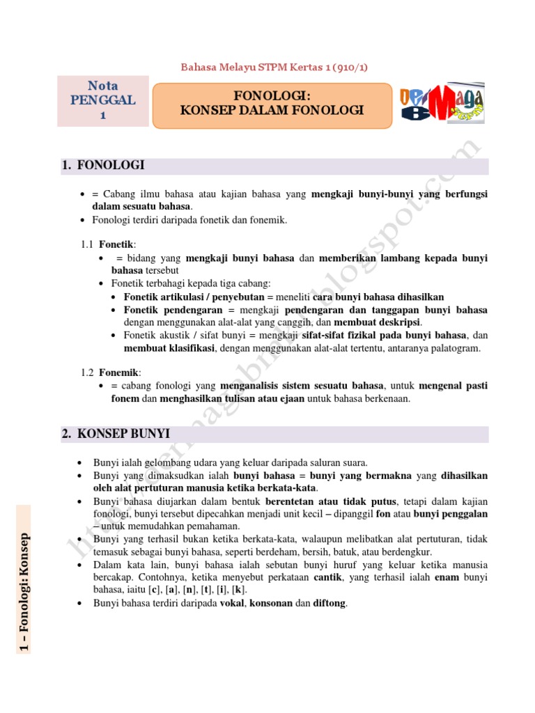 Nota Penggal 1 Fonologi Konsep Dalam Fonologi