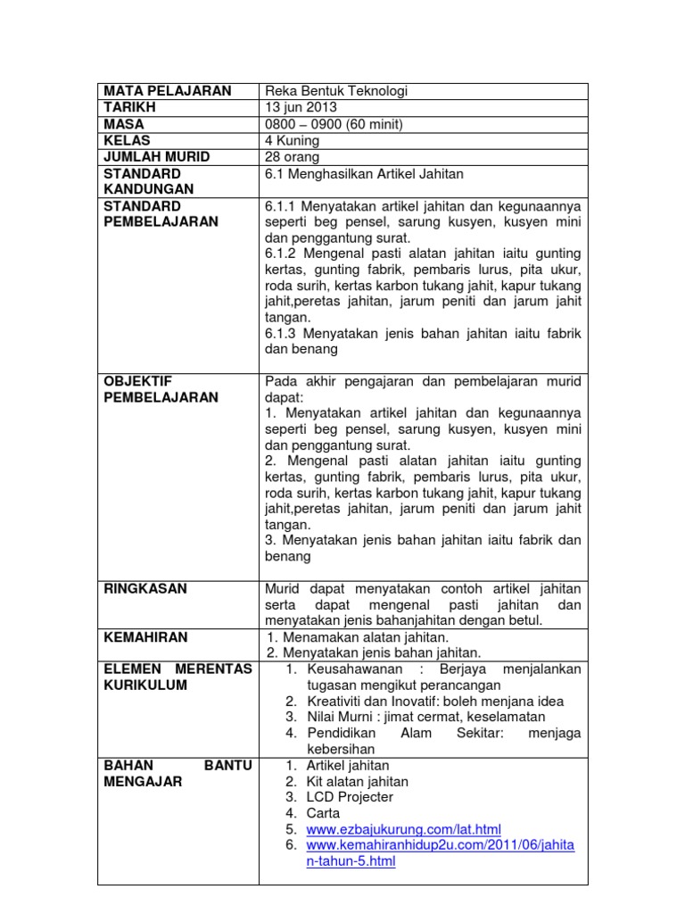 Bermacam Macam Rpt Reka Bentuk Teknologi Tahun 4 Yang Boleh Di Download Dengan Mudah Skoloh