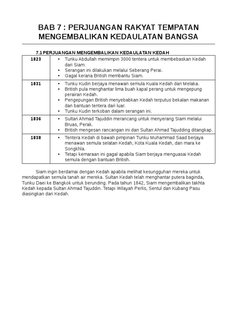 Nota Sejarah Tingkatan 2 Bab 7 1 Kedaulatan Kedah Tergugat
