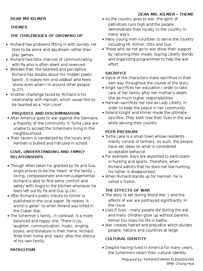 Themes Moral Values Lesson Characteristics Mr Kilmer 2 Docx Dear Mr Kilmer Theme Moral Value Positive Bravery Courage Lesson Learnt Course Hero