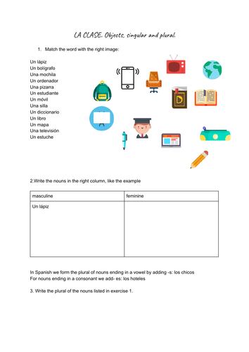 Classroom Objects Singular And Plural Worksheet And Memory Game Teaching Resources
