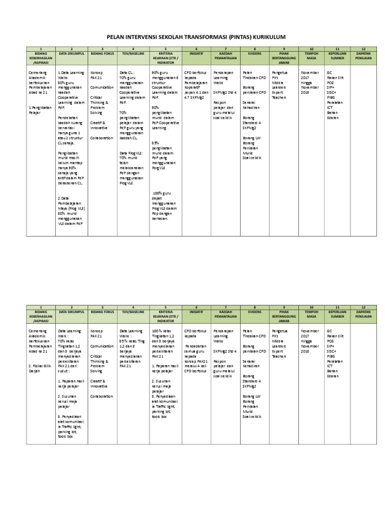 Pelan Intervensi Transformasi Sekolah Pintas Sk Pendamaran Jaya 2017
