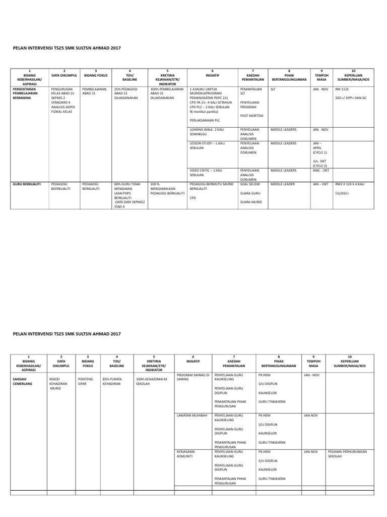 Pelan Intervensi Ts25 Smk Sultsn Ahmad 2017 Doc