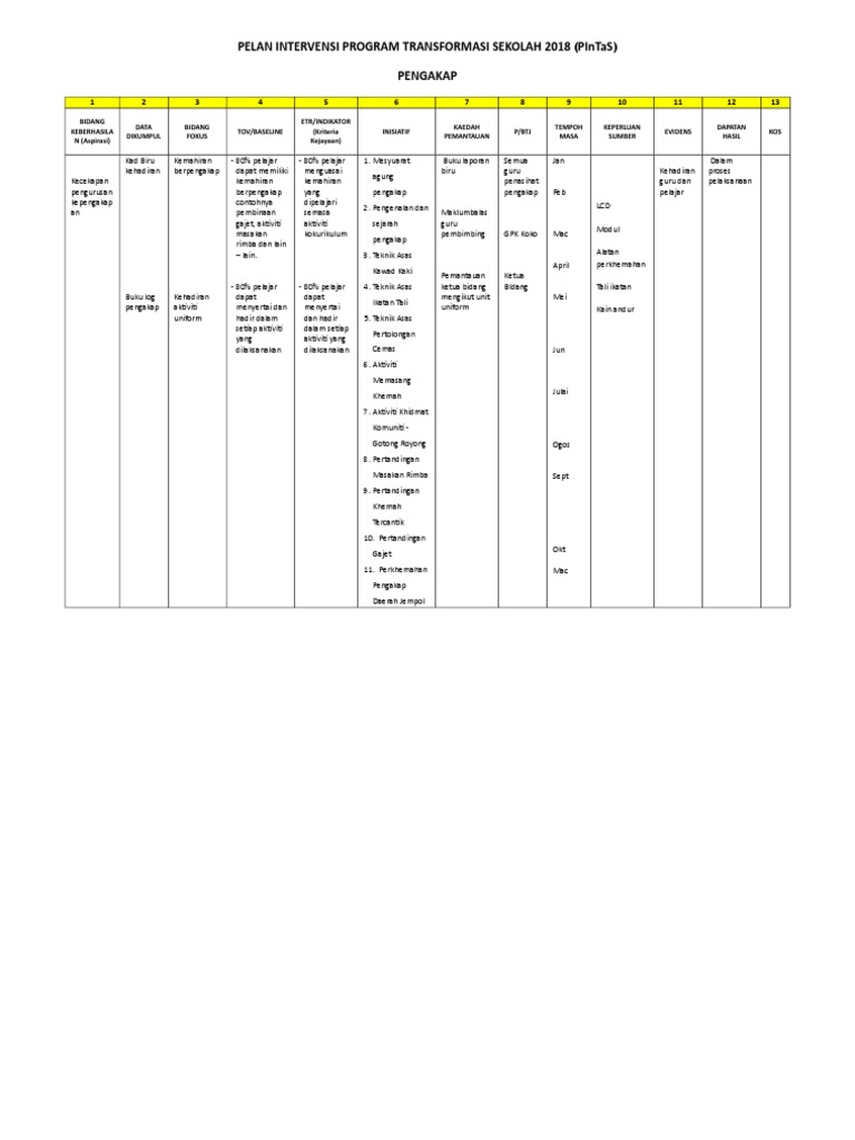 Pelan Intervensi Program Transformasi Sekolah Pintas Bidang Kokurikulum 1 2 3 4 5