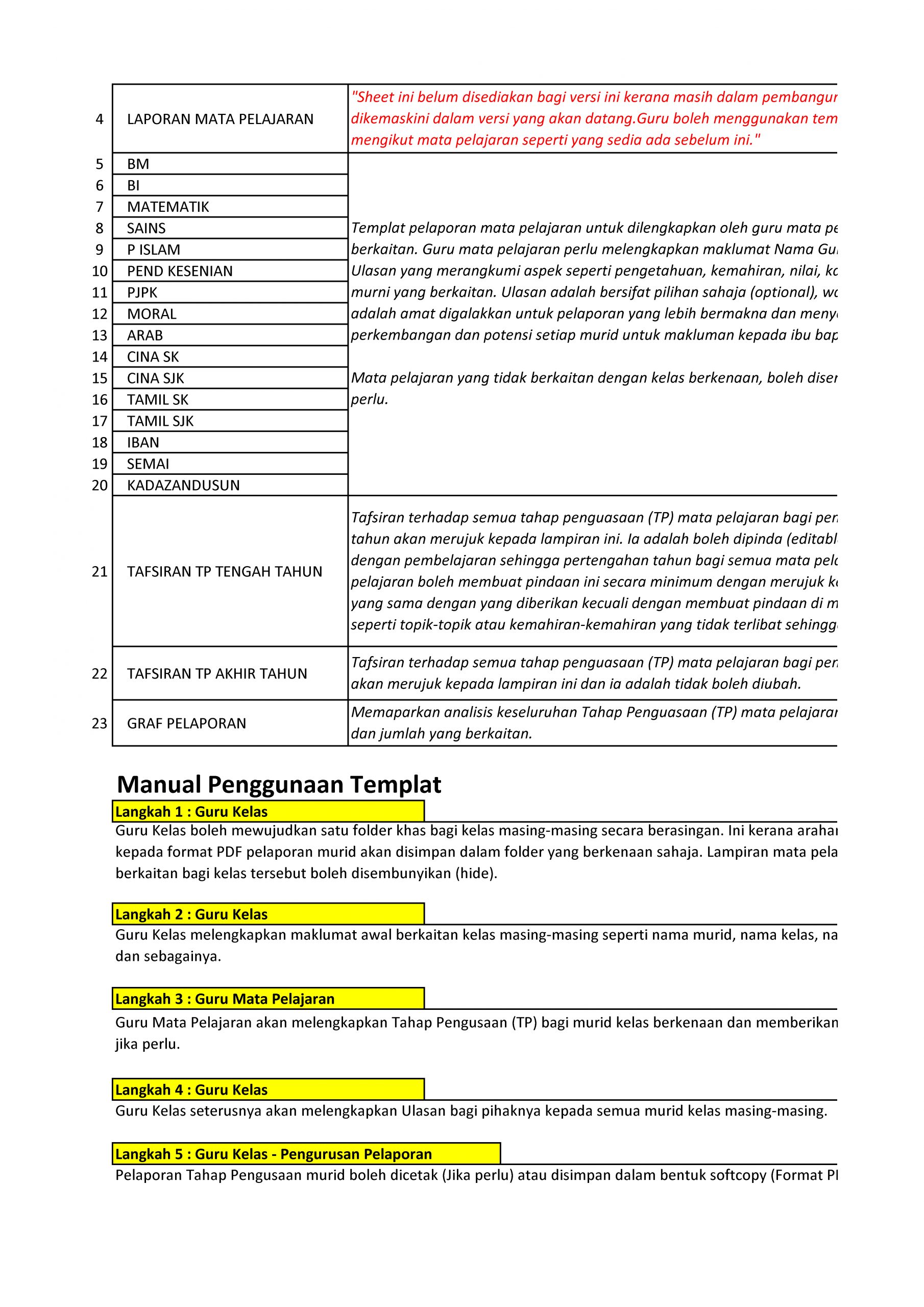 Templat Pelaporan Pbd Tahun 2 Tcer My