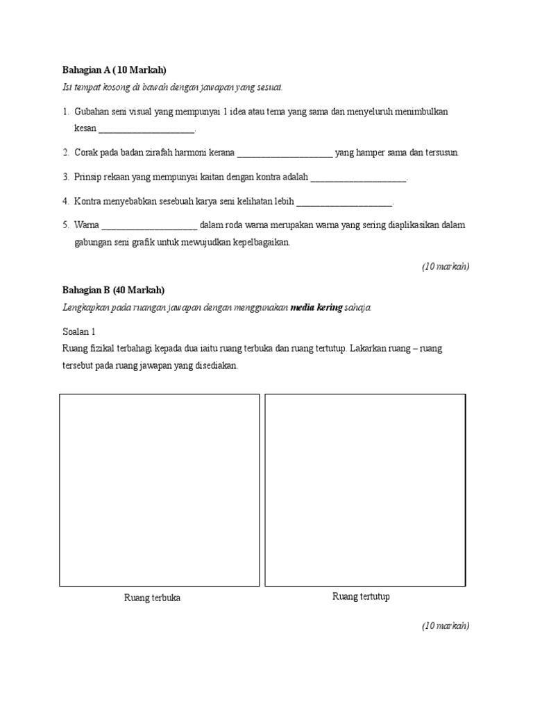 Soalan Peperiksaan Ahkir Bersama Jawapan Tahun Pendidikan Seni Tingkatan 2