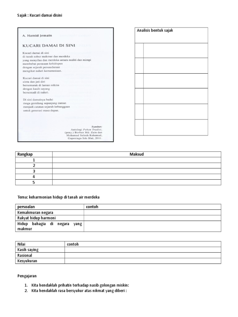 Sajak Kucari Damai Di Sini K Maksud Tema Persoalan Gaya Bahasa Nilai Pengajaran Bumi Gemilang