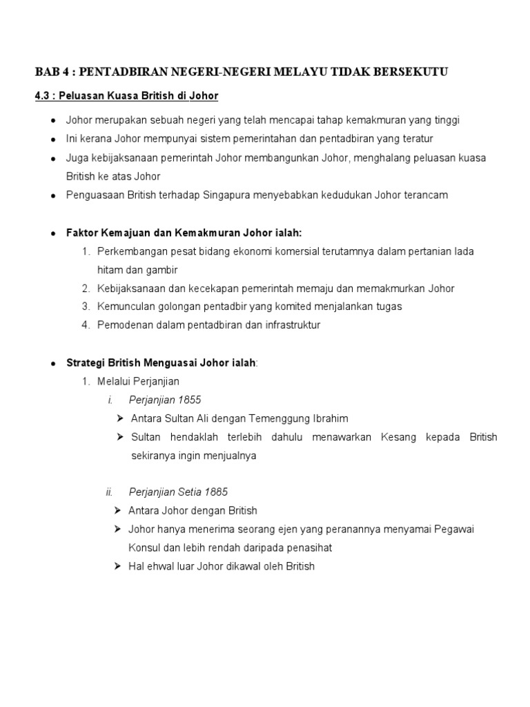 Bab 4 Pentadbiran Negeri Negeri Melayu Tidak Bersekutu 4 3 Peluasan Kuasa British Di Johor