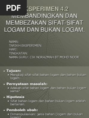 Eksperimen 4 2 Membandingkan Dan Membezakan Sifat Sifat Logam Dan Bukan Logam