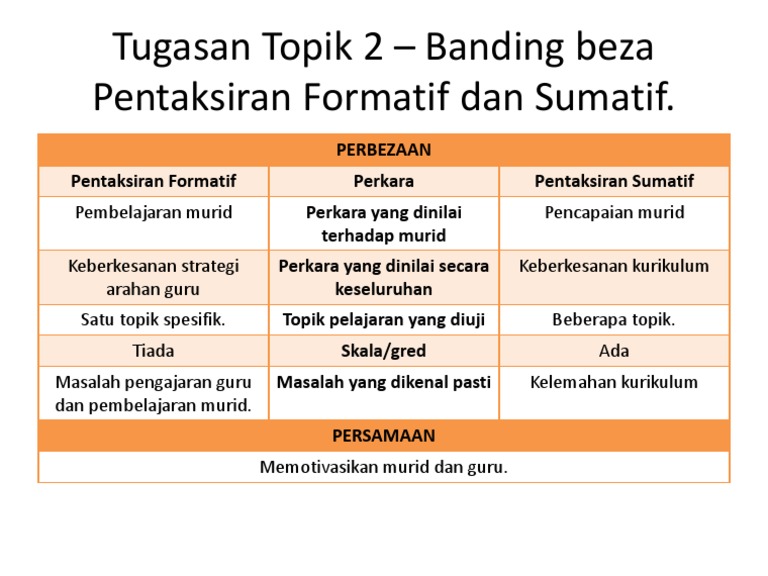 Tugasan Topik 2 Banding Beza Pentaksiran Formatif Dan Sumatif