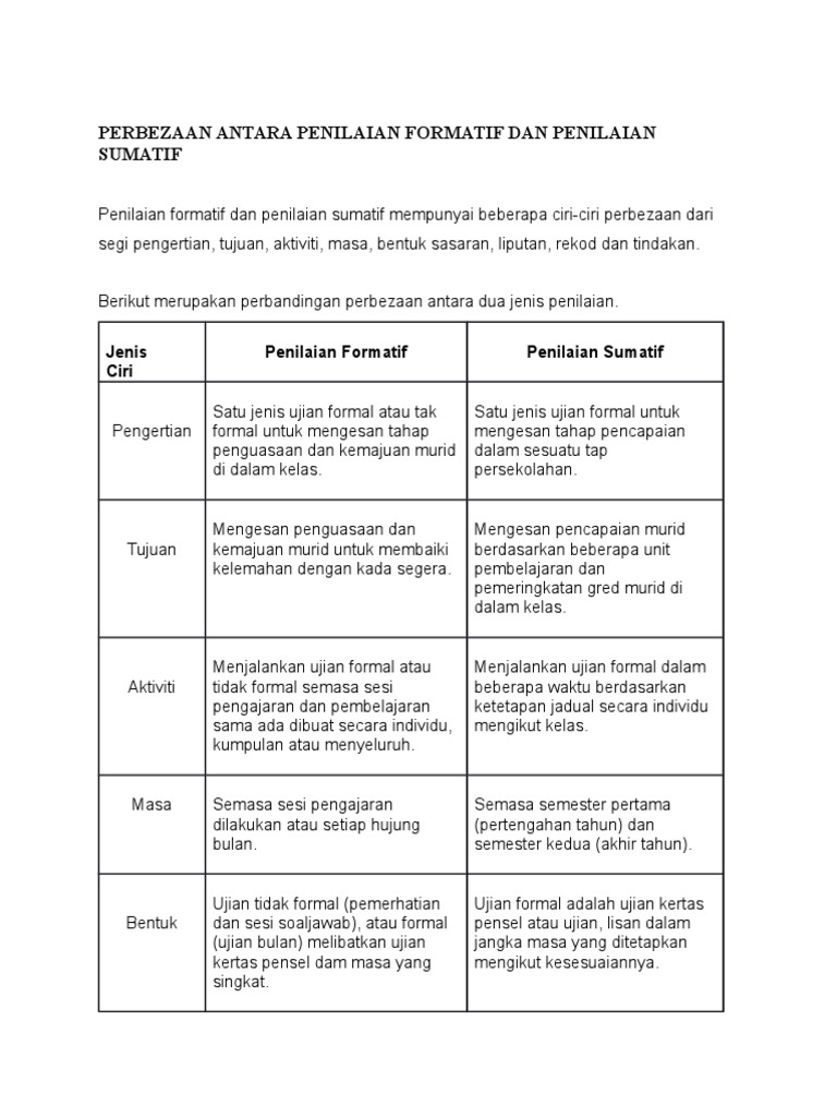 Perbezaan Antara Penilaian Formatif Dan Penilaian Sumatif Docx Document