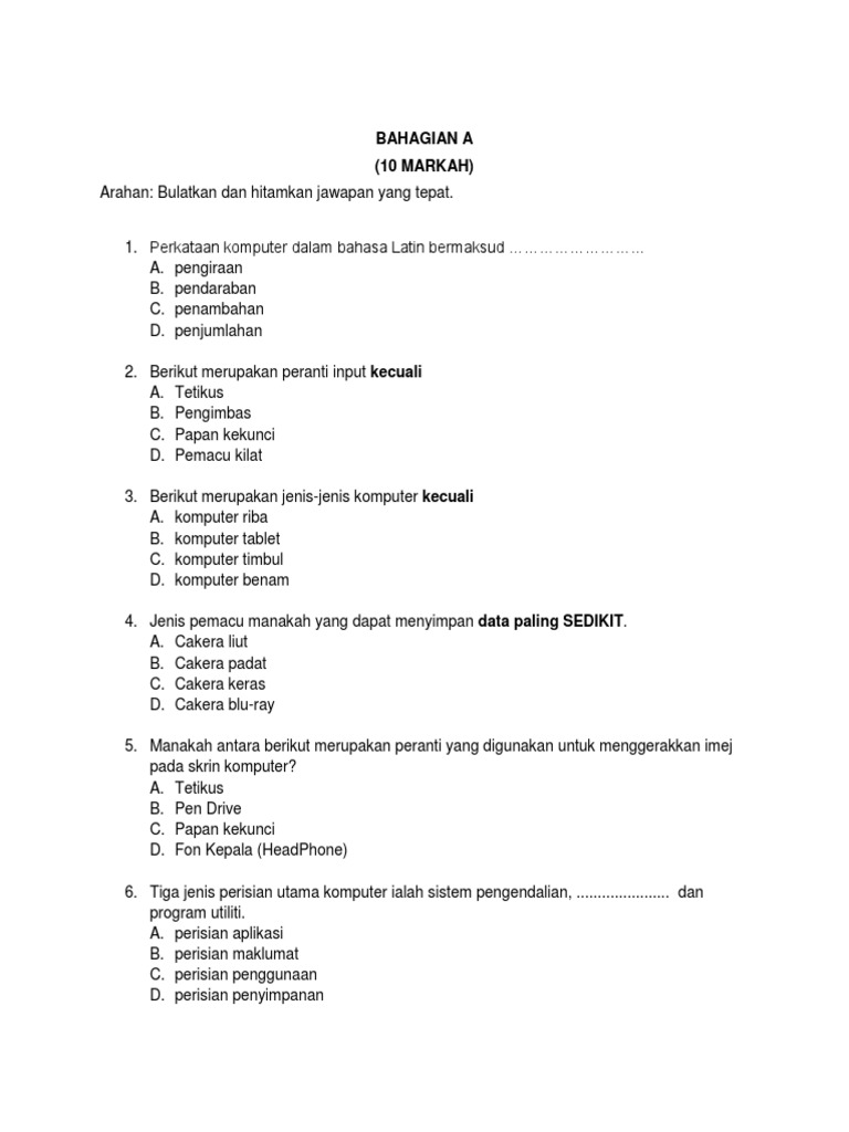 Bahagian A Jawab Semua Soalan 23markah Perkataan Komputer Peribadi B Kamera Digital Wifi Pdf Document