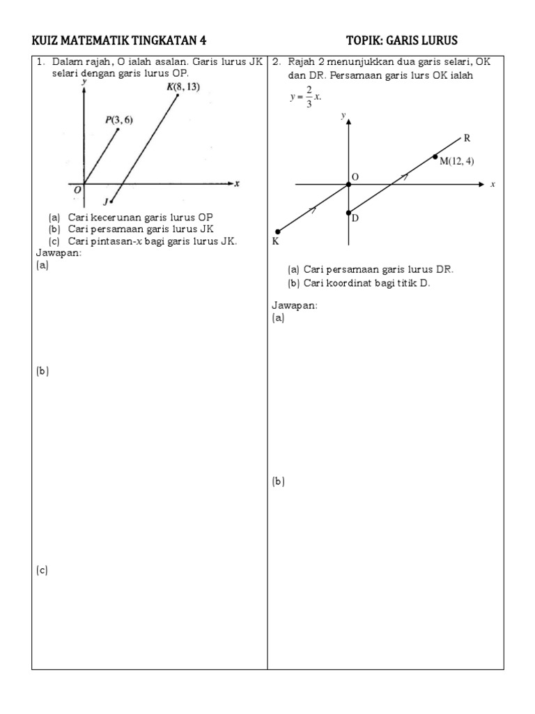 Contoh Soalan Persamaan Garis Lurus Tingkatan 4 Kuora W