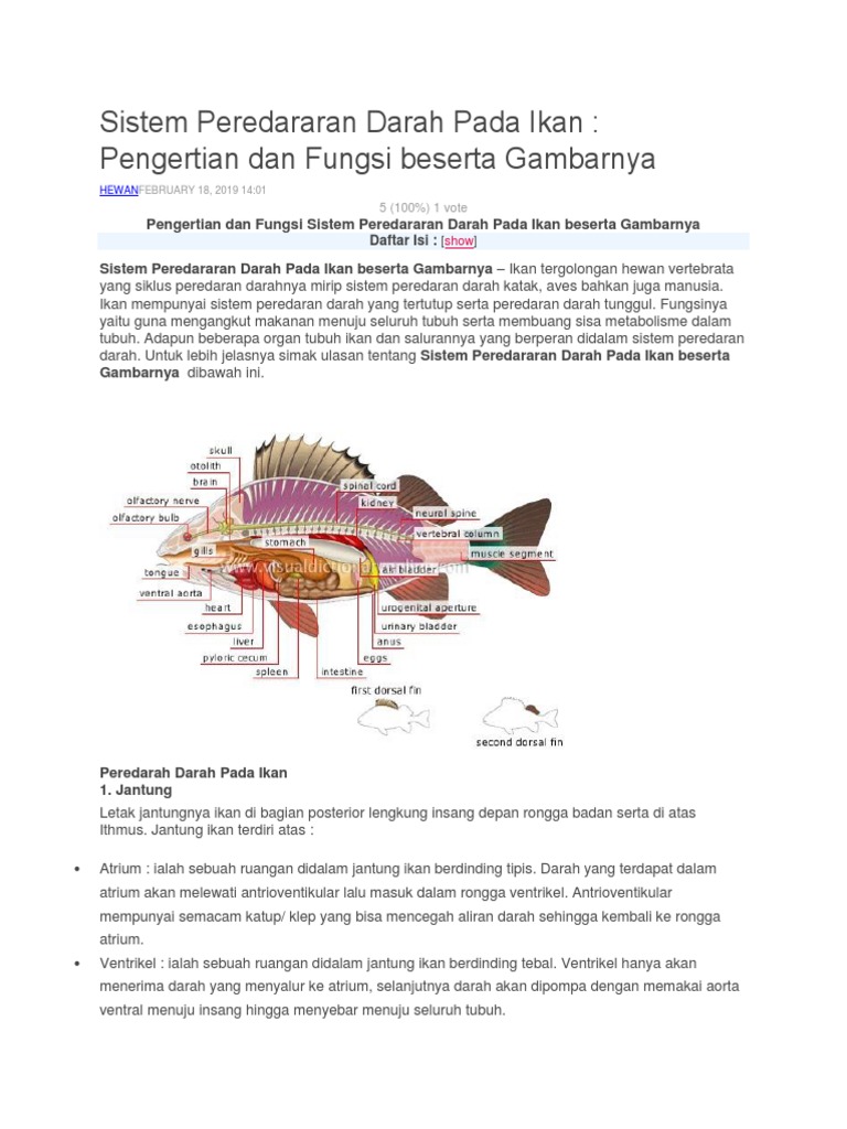 Sistem Peredararan Darah Pada Ikan Pengertian Dan Fungsi Beserta Gambarnya