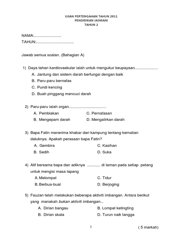 Pertengahan Tahun Soalan Pendidikan Jasmani Tahun 2