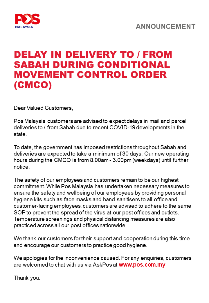 Pos Malaysia Berhad On Twitter Pengumuman Ubah Hala Bungkusan Anda Ke Rumah Semasa Pkpb Para Pelanggan Boleh Mengemaskini Alamat Di Https T Co Uxnppjsv3u Announcement Redirect Parcels To Your Home Address During Cmco Customers May