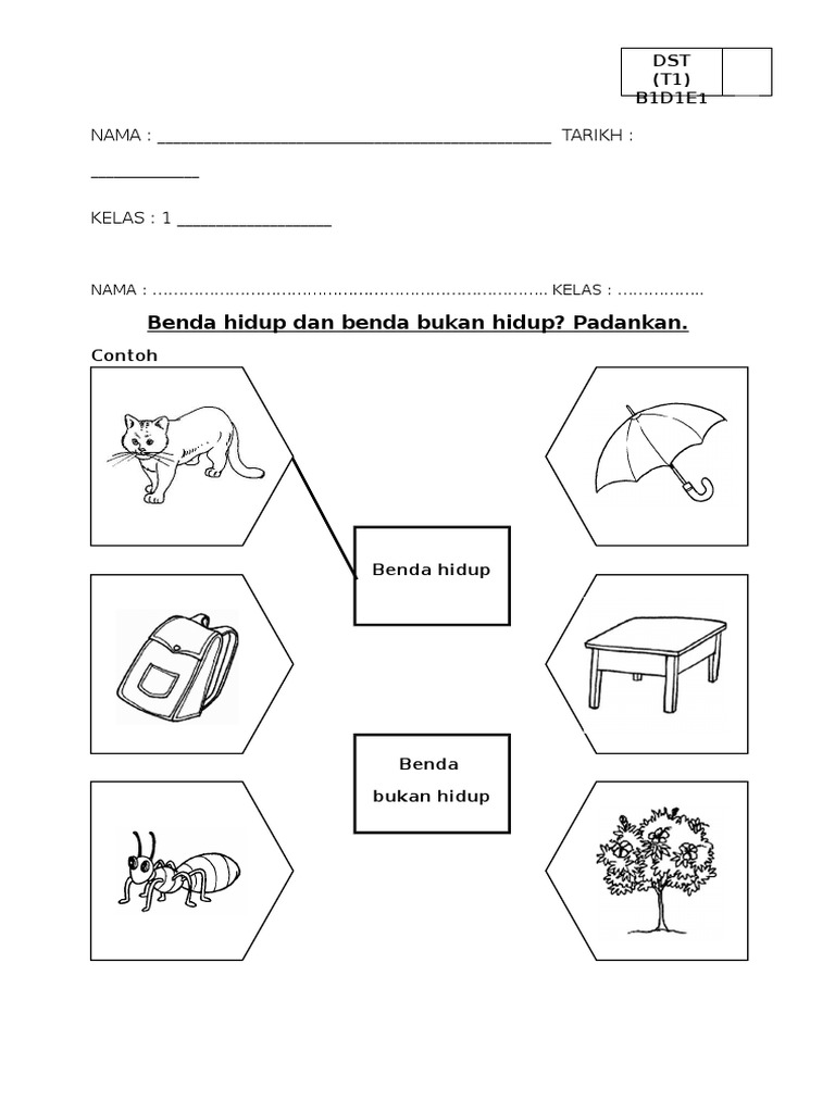 Benda Hidup Dan Benda Bukan Hidup Padankan Nama Tarikh Kelas 1