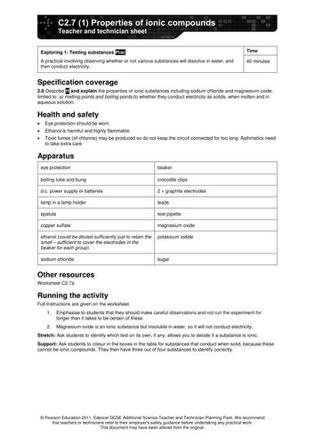 Practical Activity To Investigate The Properties Of Ionic Compounds Teaching Resources