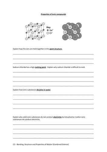 Properties Of Ionic Compounds C2 Aqa Combined Science Paper 2 Teaching Resources
