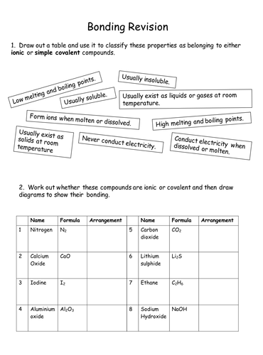 Ionic And Covalent Bond Worksheet C Teaching Resources