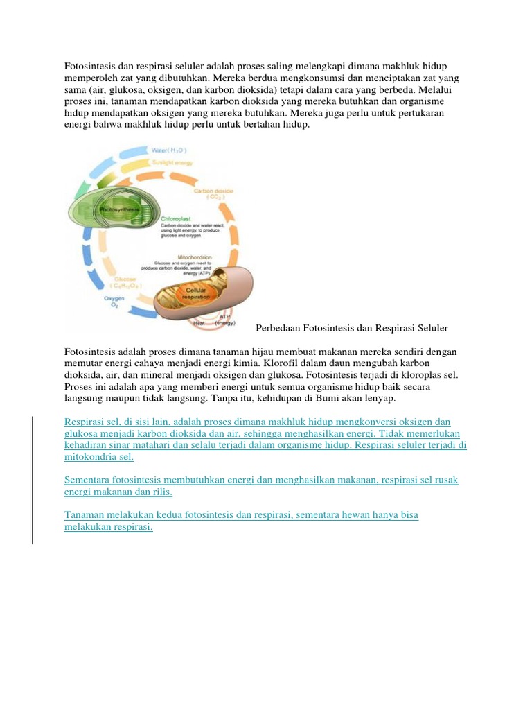 Proses Respirasi Sel Dan Fotosintesis Saling Melengkapi