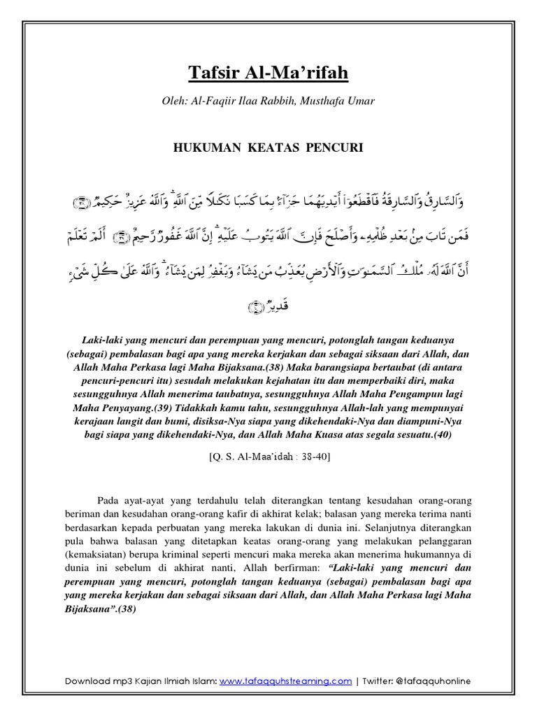 Tafsir Surat Al Maidah Ayat 38 40 Tafsir Al Quran Referensi Tafsir Di Indonesia