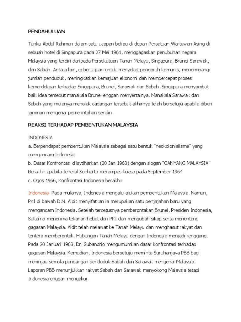 Doc Reaksi Indonesia Terhadap Pembentukan Malaysia Ariff Samsudin Academia Edu