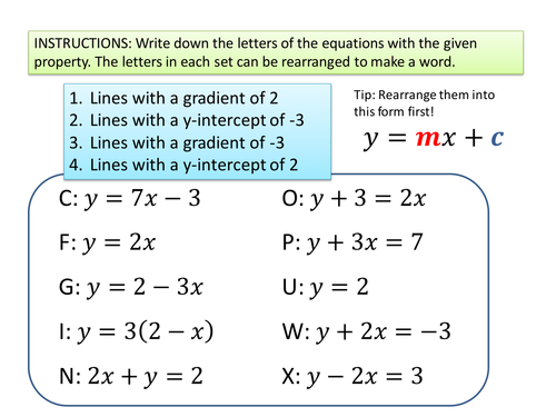 Rearranging Linear Equations Into The Form Y Mx C Teaching Resources
