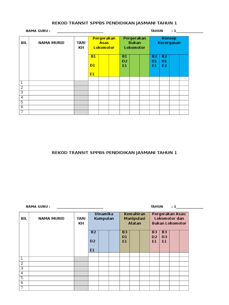 Rekod Transit Pbs Pendidikan Jasmani T1