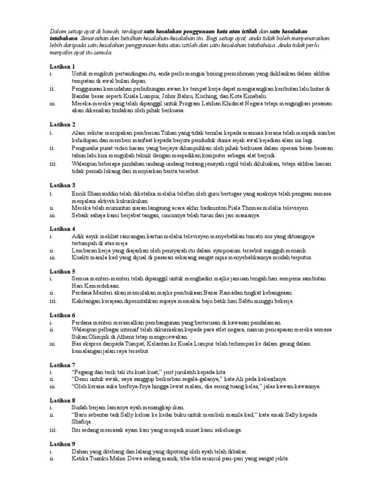 B5 Latihan Kesalahan Kata Istilah Dan Tatabahasa