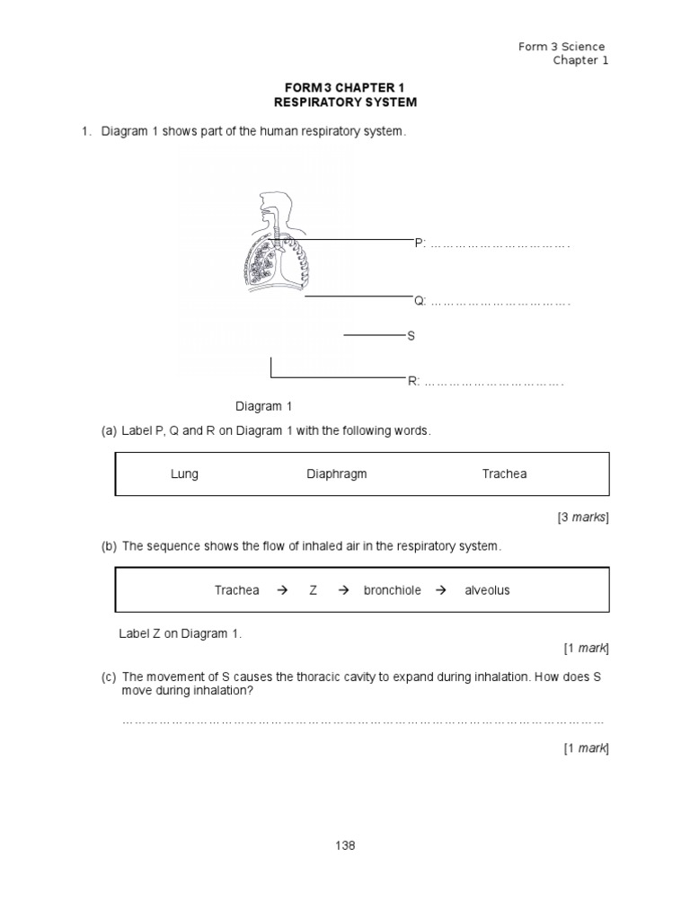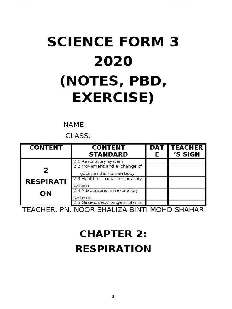 Science Form 3 Chapter 2 Respiration Respiratory System Lung
