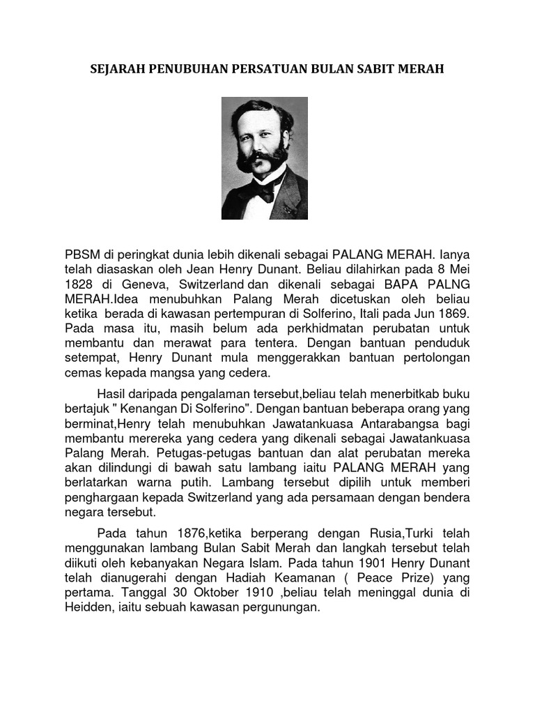 Doc Sejarah Persatuan Bulan Sabit Merah Menyusur Misi Kemanusiaan Jean Henry Dunant Wen Hang Pui Academia Edu