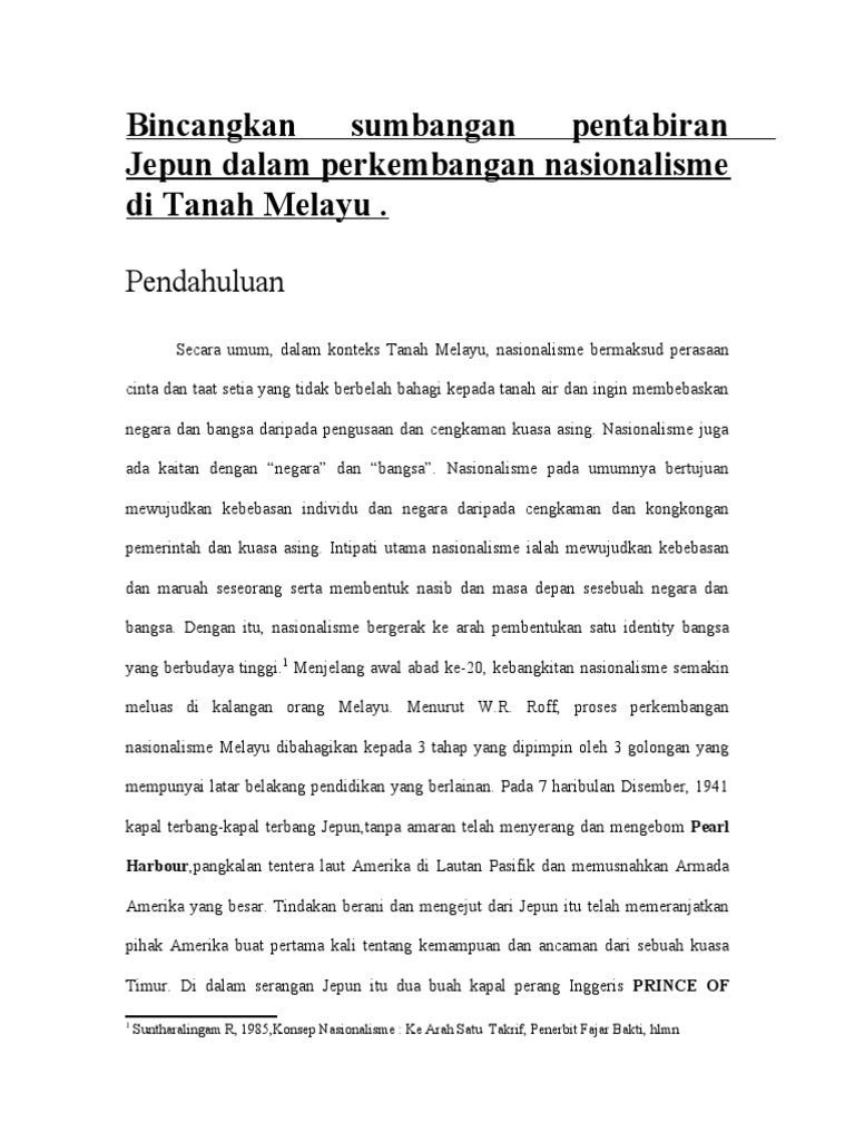 Bincangkan Sumbangan Pentabiran Jepun Dalam Perkembangan Nasionalisme Di Tanah Melayu