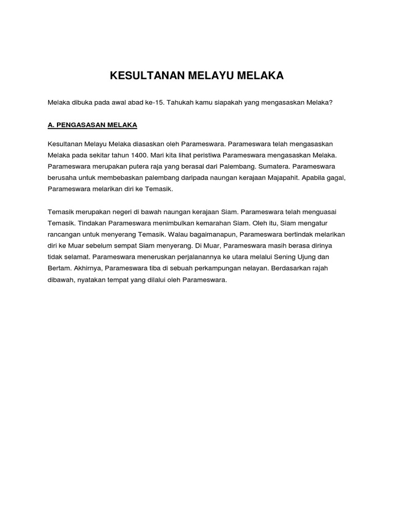 Kesultanan Melayu Melaka Nota Ringkas