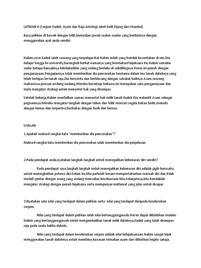 Contoh Soalan Cerpen Kaduk Ayam Dan Raja Soalan Ca