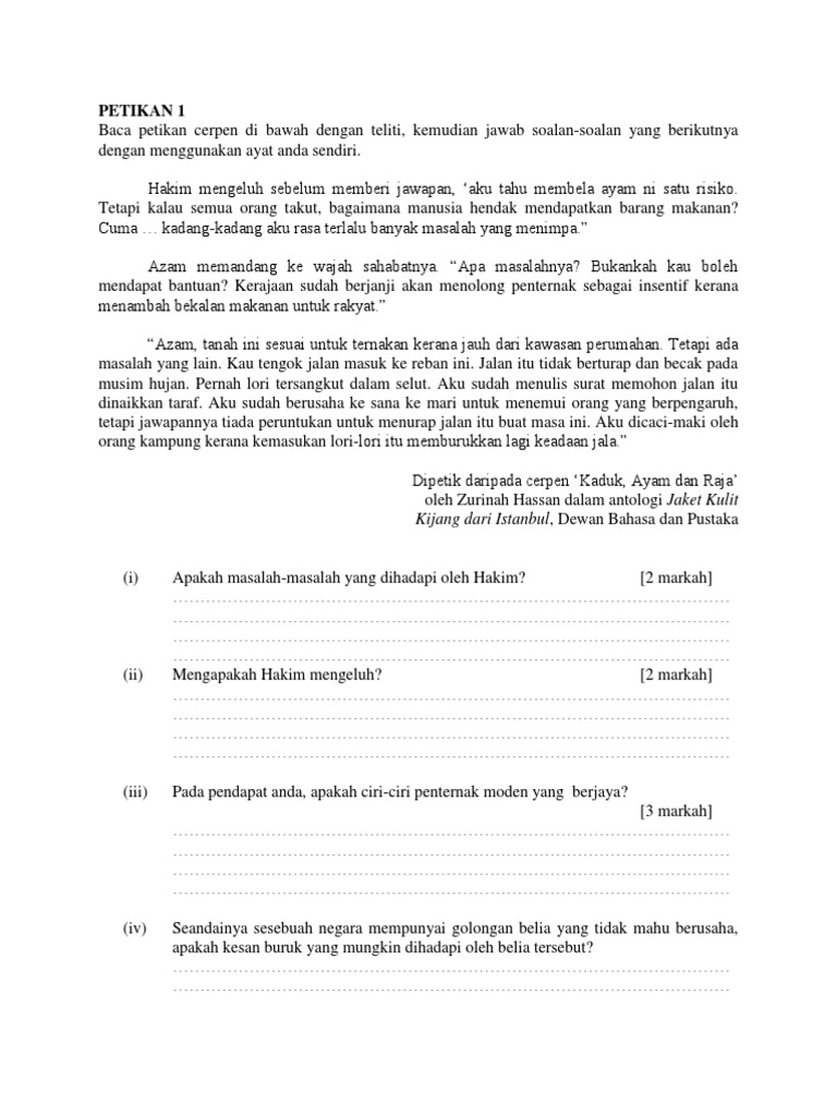 Contoh Soalan Cerpen Kaduk Ayam Raja Kerja Kosp