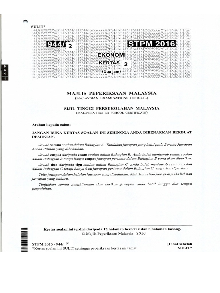 Mphonline Kertas Soalan Peperiksaan Tahun Tahun Lepas Stpm 2013 2016 Ekonomi 944 2 Penggal 2