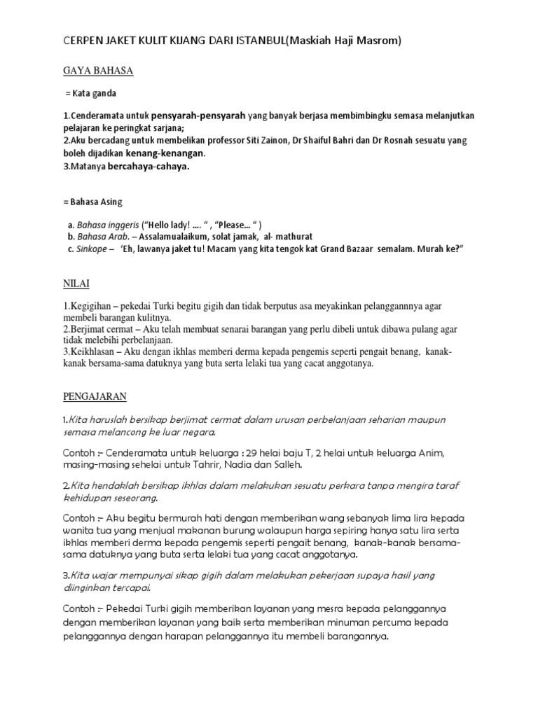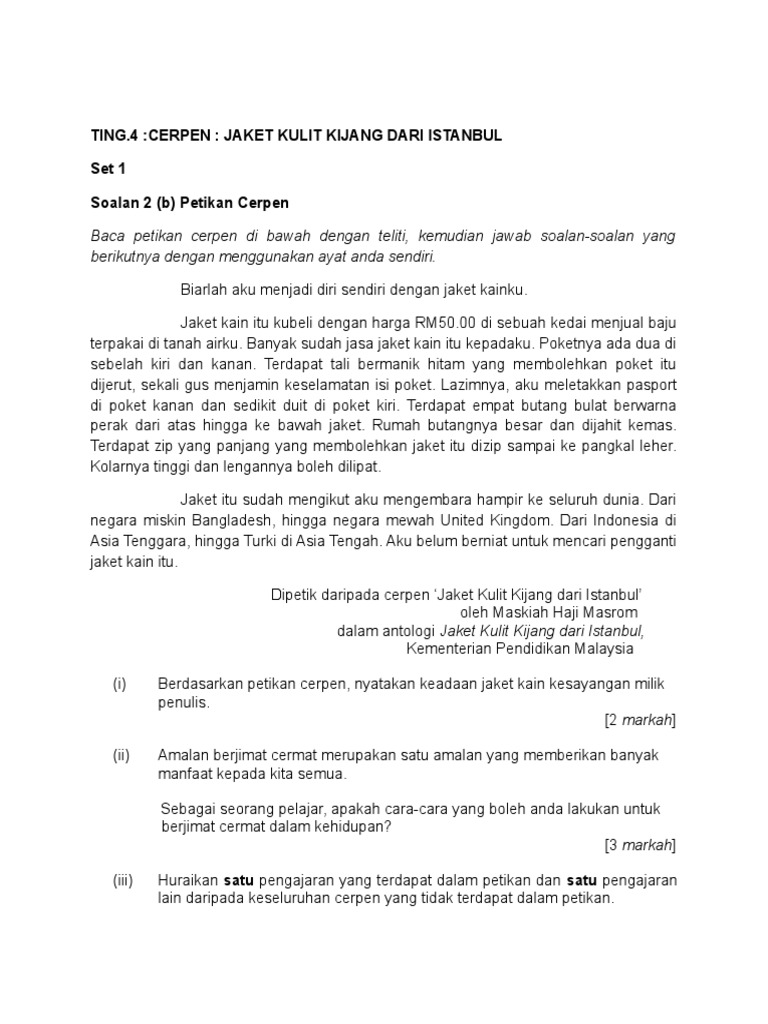 Soalan Cerpen Jaket Kulit Kijang Dari Istanbul Selangor F