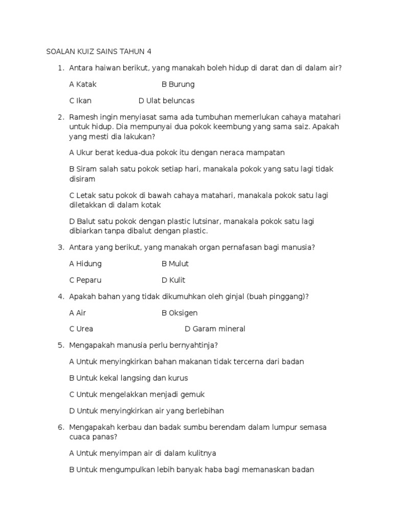 Soalan Quiz Sains Tahun 4 Viral Blog U