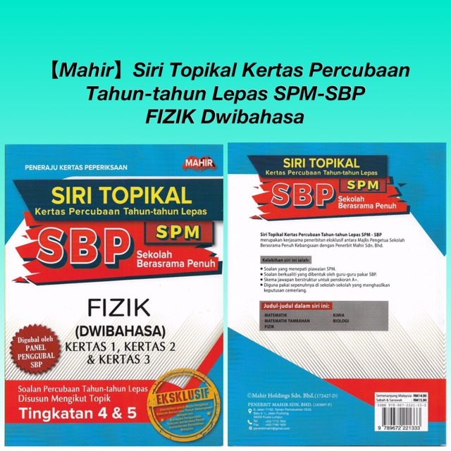 Mahir Siri Topikal Kertas Percubaan Tahun Tahun Lepas Spm Sbp Fizik Dwibahasa Kertas 1 2 3 Shopee Malaysia