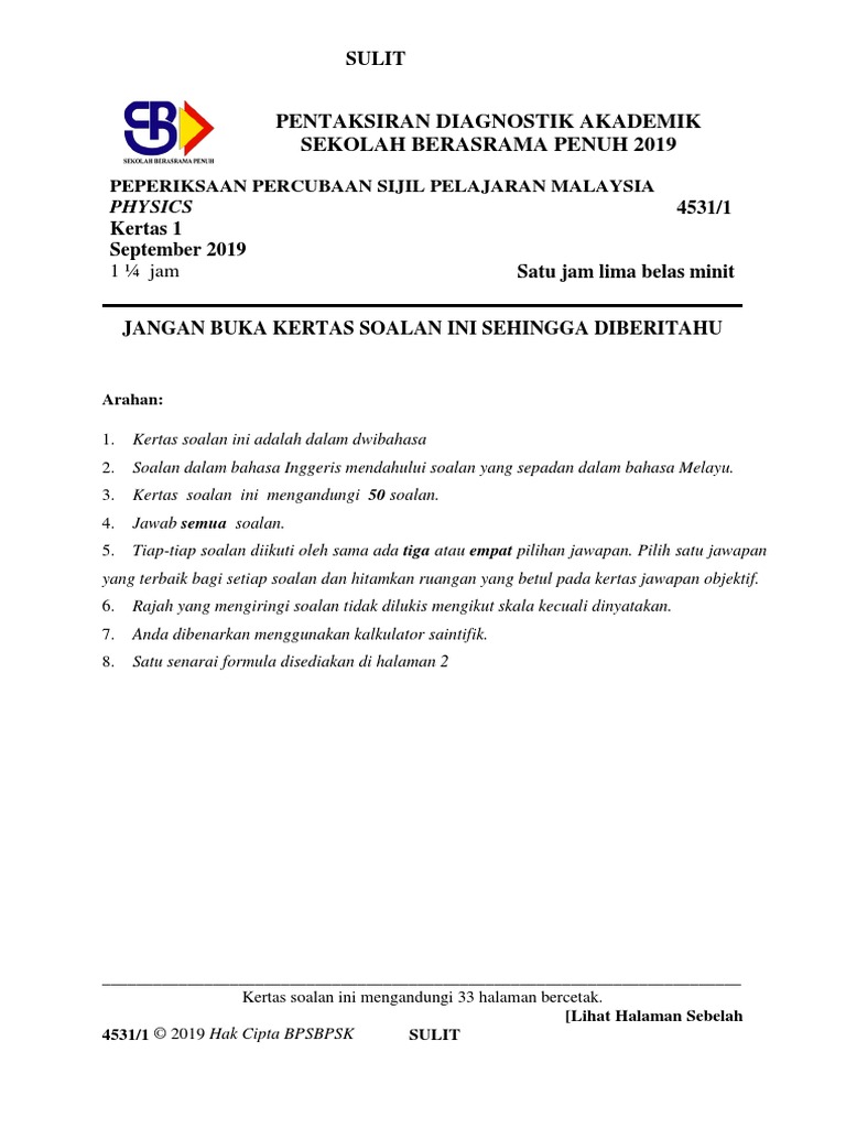 Soalan Percubaan Spm Sbp 2019 Fizik