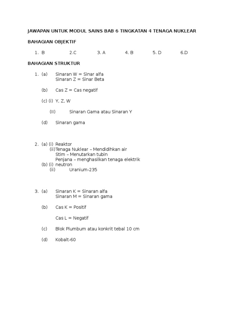 Jawapan Untuk Modul Sains Bab 6 Tenaga Nuklear T4 Dan Bab 5 Motion T5