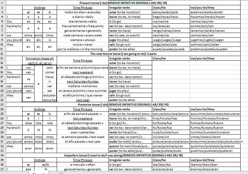 Spanish 101 Past Present And Future Conjugations