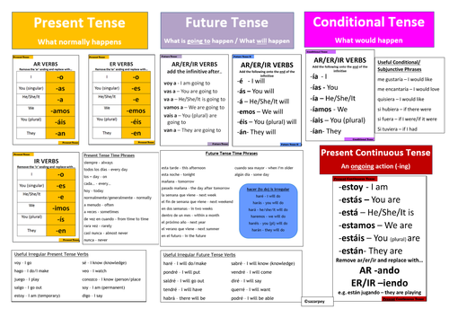 Spanish Toolkit Of 5 Key Tenses Present Near Simple Future Imperfect Preterite Teaching Resources