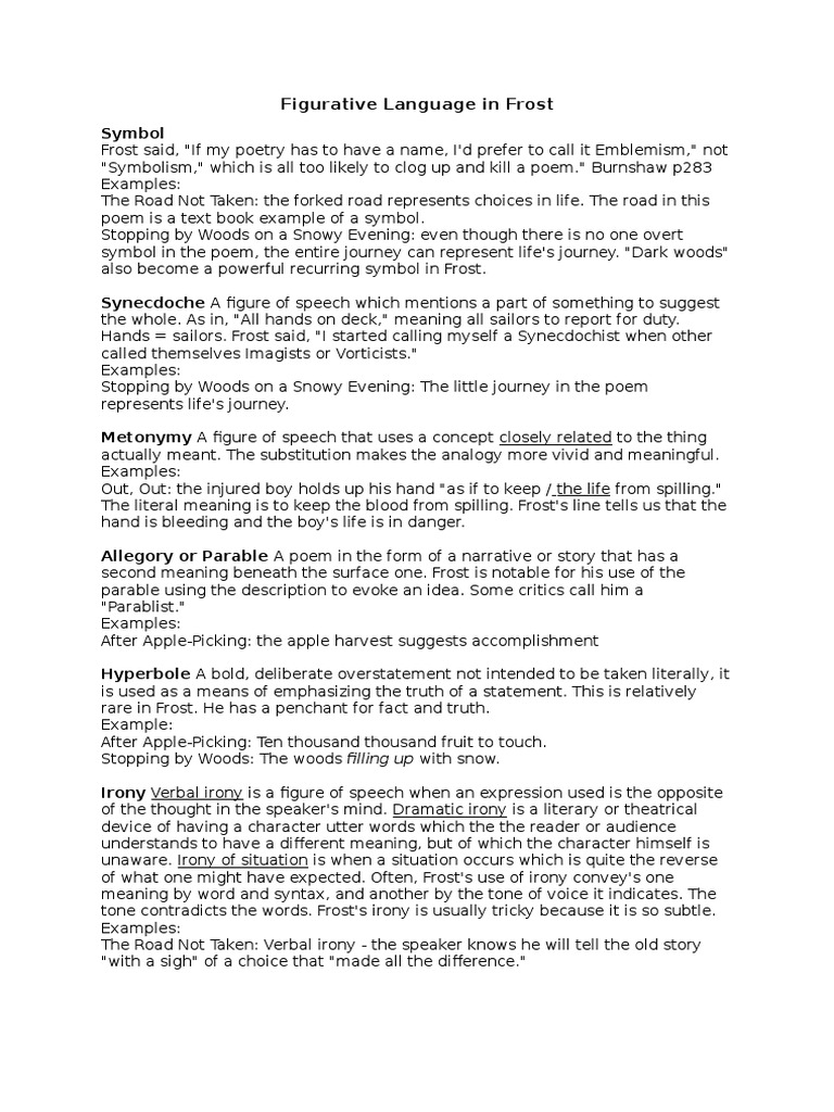 Figure Of Speech Used In Stopping By Woods On A Snowy Evening Brainly In