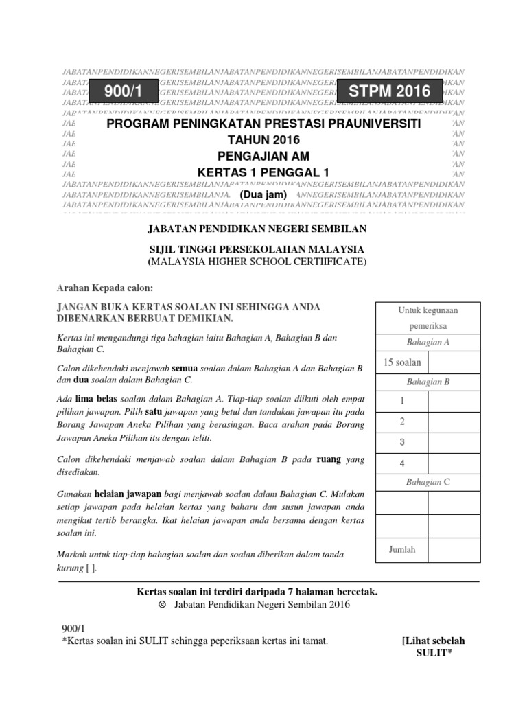 Kertas Soalan Peperiksaan Tahun Tahun Lepas Stpm Pengajian Am Semester 1 2 3