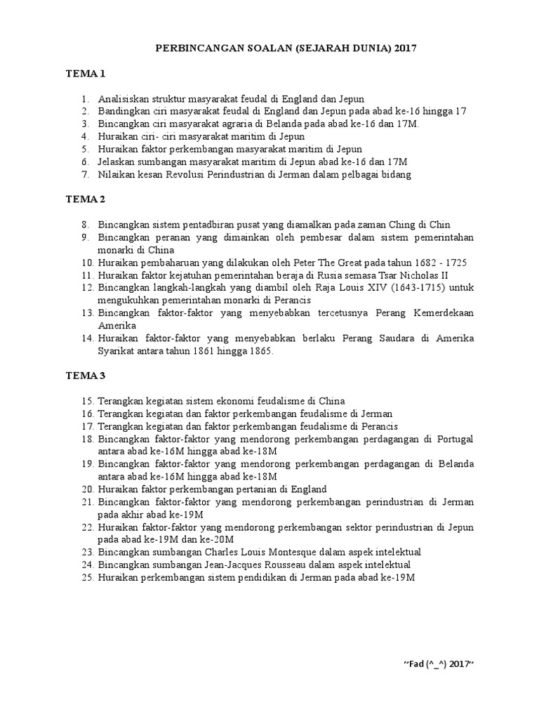 Perbincangan Soalan Sejarah Dunia 2017 Tema 1