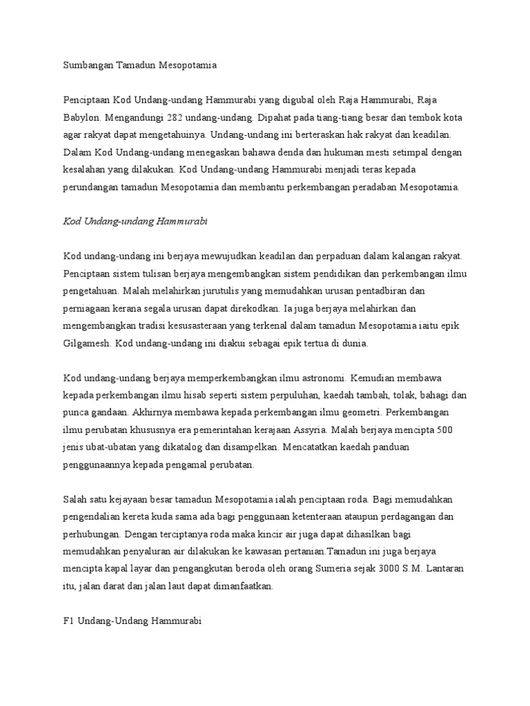 Sumbangan Tamadun Mesir Mesopotamia