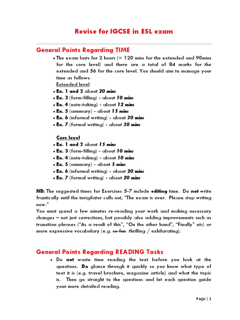 Revise For Igcse In Esl Exam Docx Essays Argument
